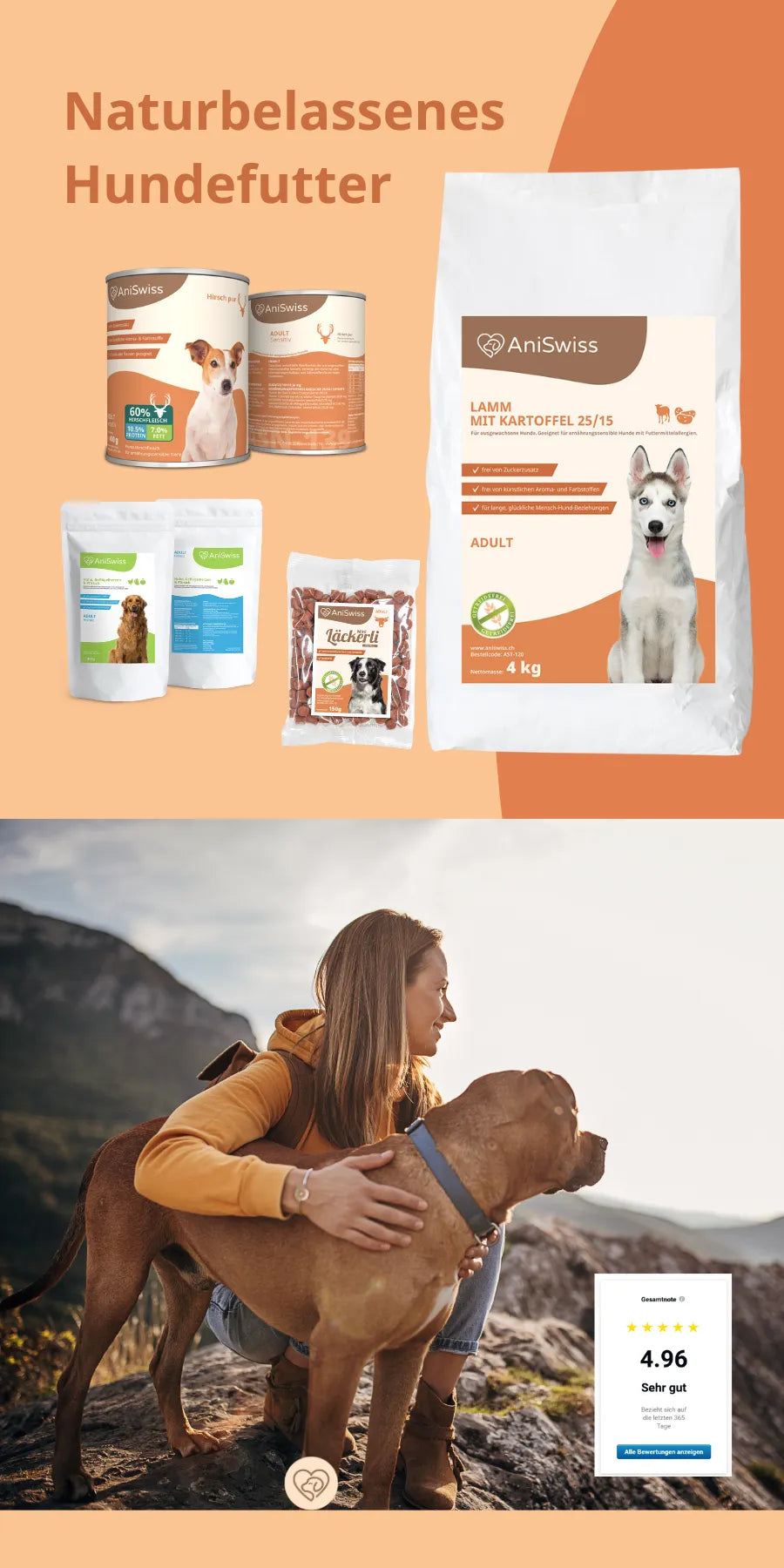 Viele Kundenstimmen bestätigen die hohe Akzeptanz bei ihren für AniSwiss Hundefutter nach höchsten Qualitätsstandards.
